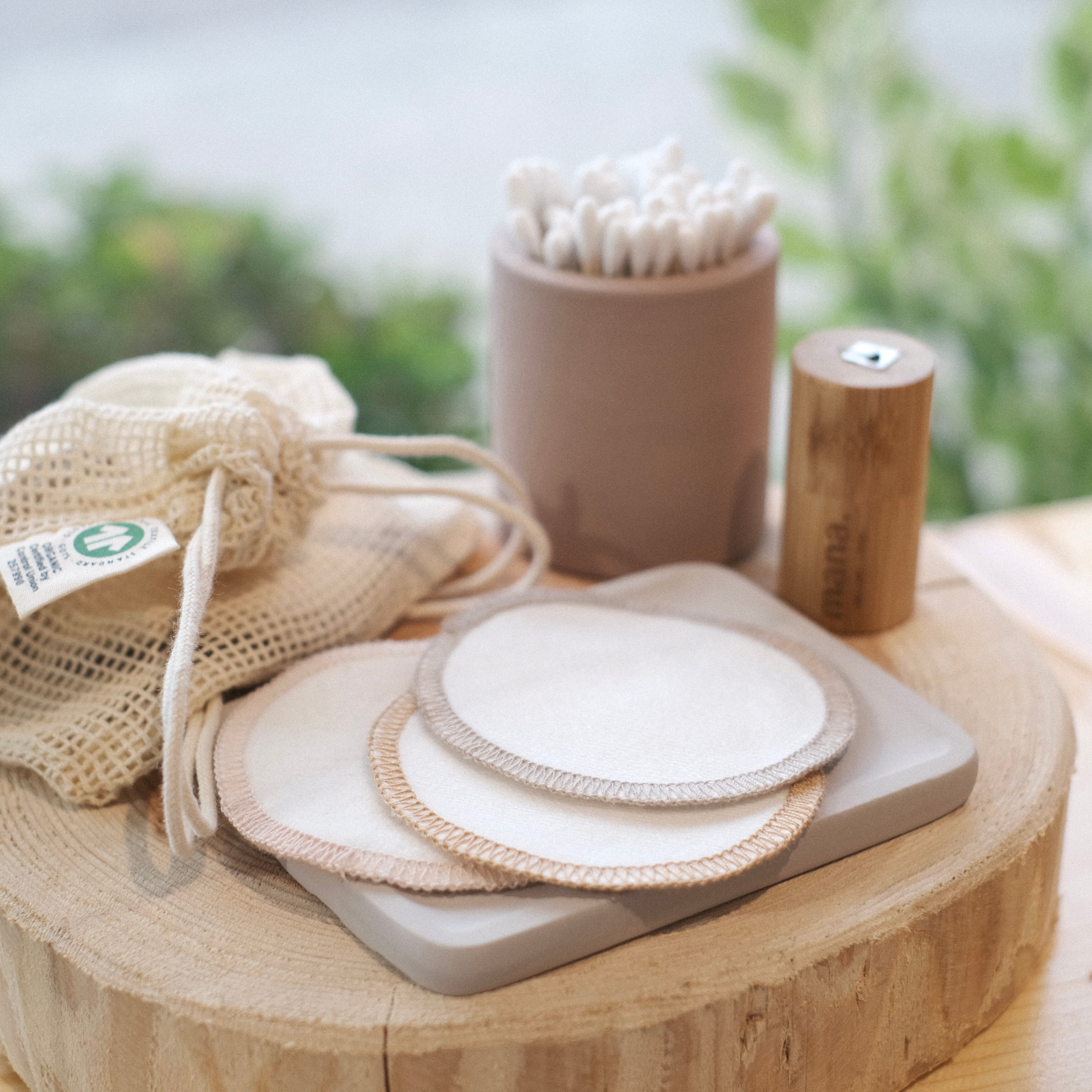 竹繊維を原料としたレーヨンとコットンで作られた、繰り返し洗って使えるエコなコットンパッドです。使い捨ての化粧パッドに比べて